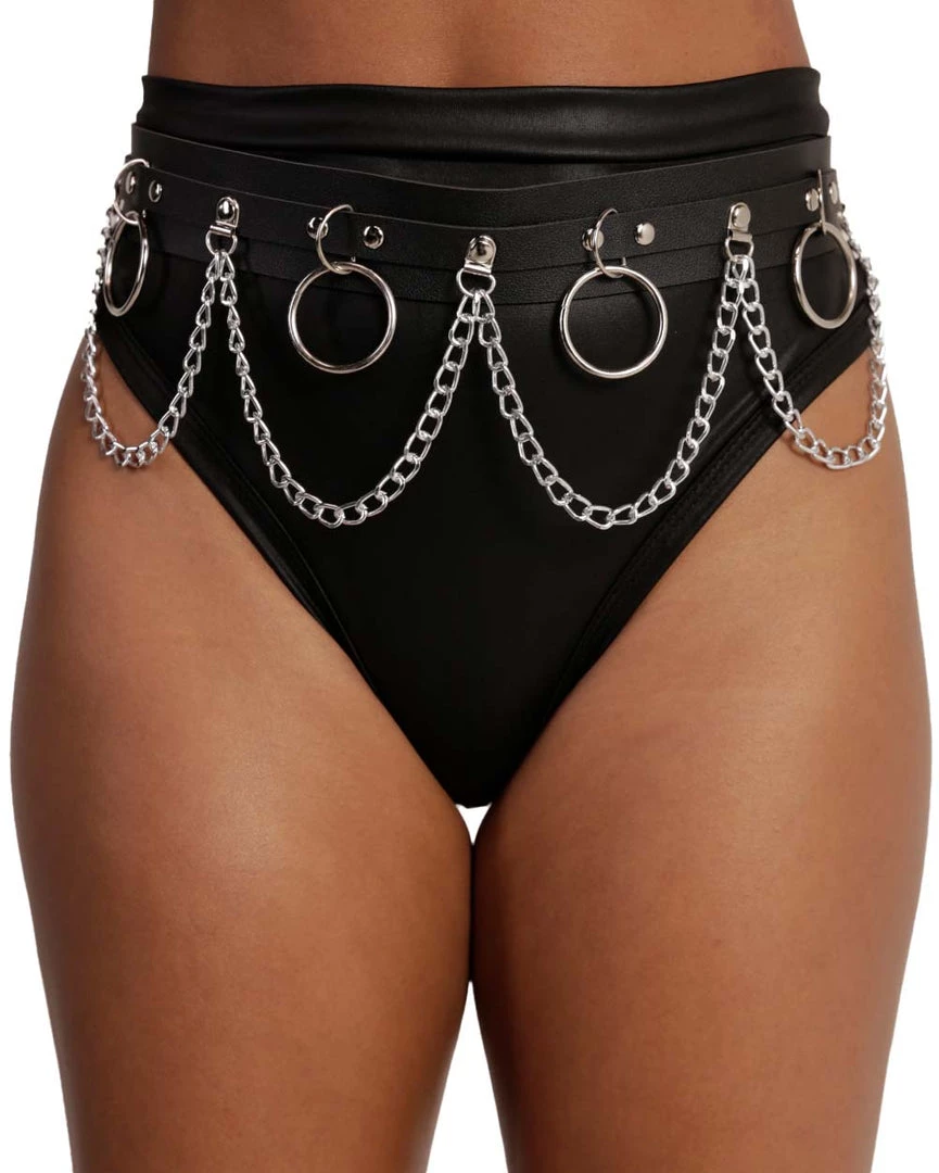 Polish off ur look with the Rule Number One Body Chain Belt. The o-rings, chains, studs, and faux leather band make up this edgy belt.
