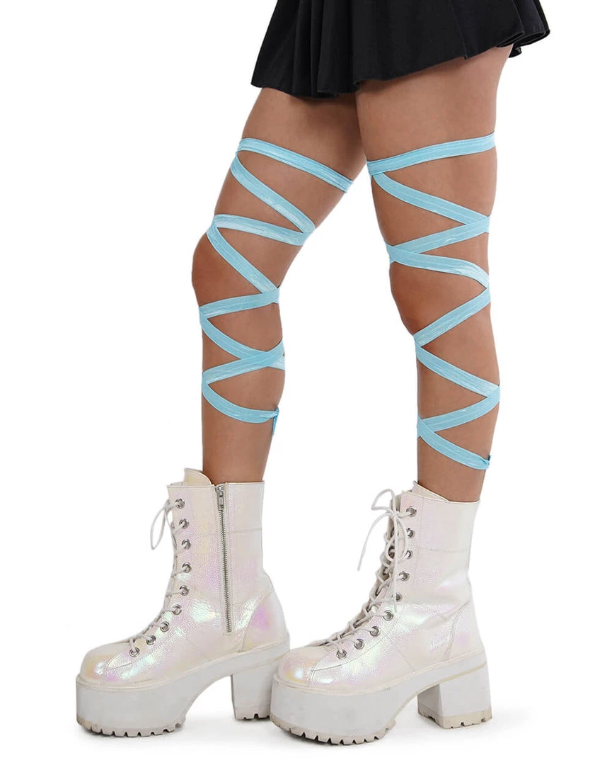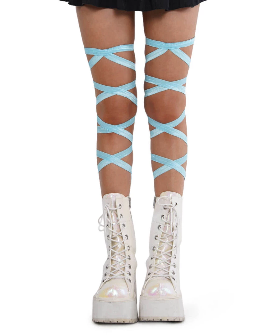 Our new non-slip leg wraps are lined with a silicone lining inside to hug your thighs and stay up all night while you’re dancing away. These leg wraps are now sold in pairs! These leg wraps will add more texture, color, and character to your legs whether you are wearing fishnets, nylons, or fluffies.