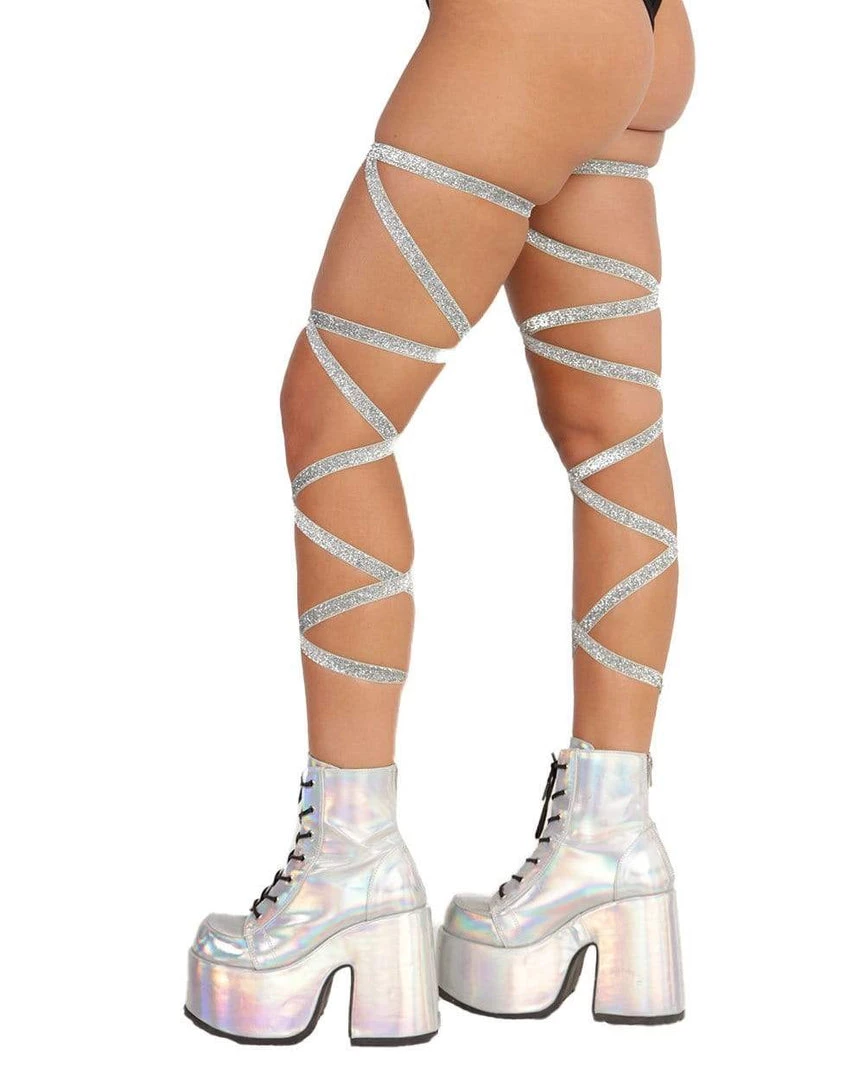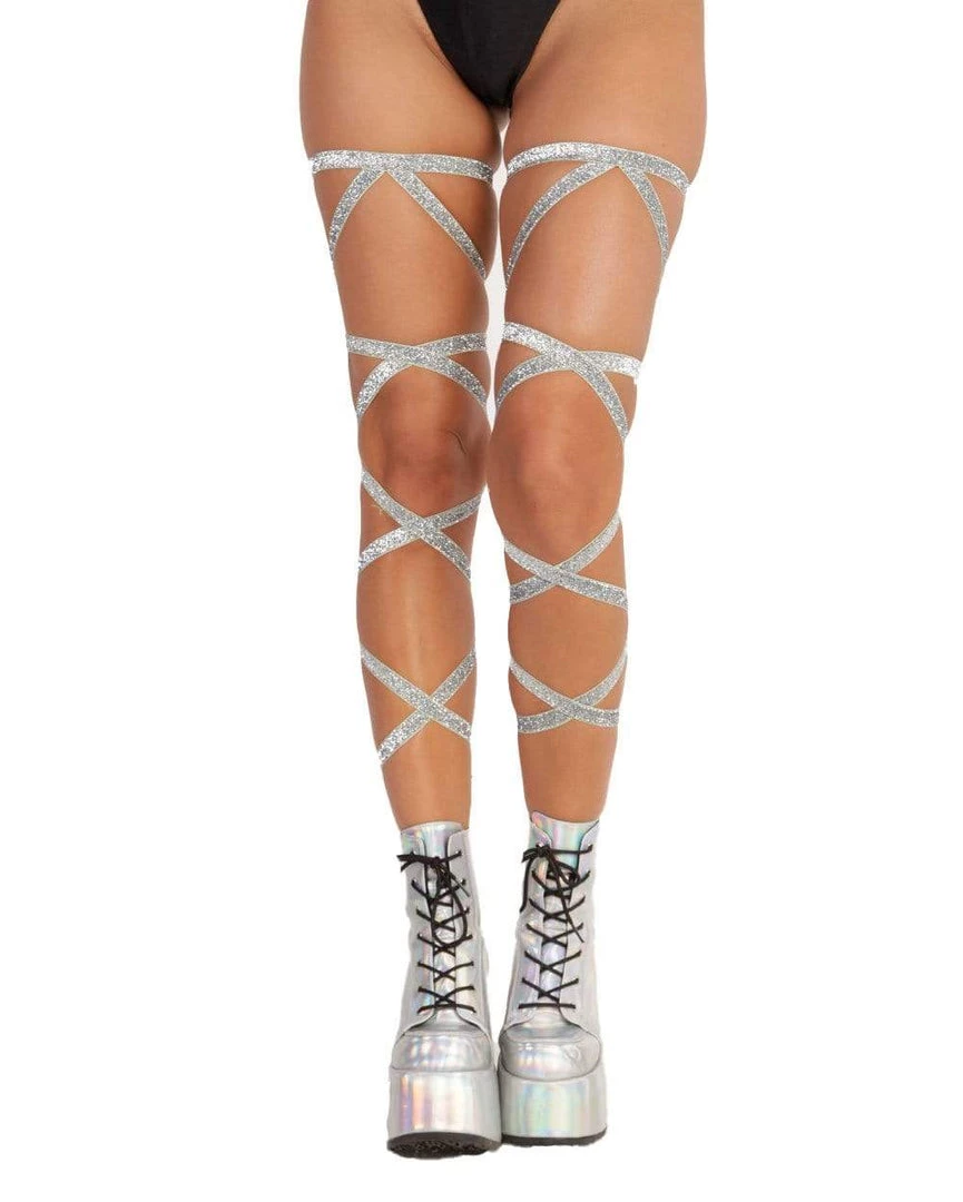 Our new non-slip leg wraps are lined with a silicone lining inside to hug your thighs and stay up all night while you’re dancing away. These leg wraps are now sold in pairs! These leg wraps will add more texture, color, and character to your legs whether you are wearing fishnets, nylons, or fluffies.
