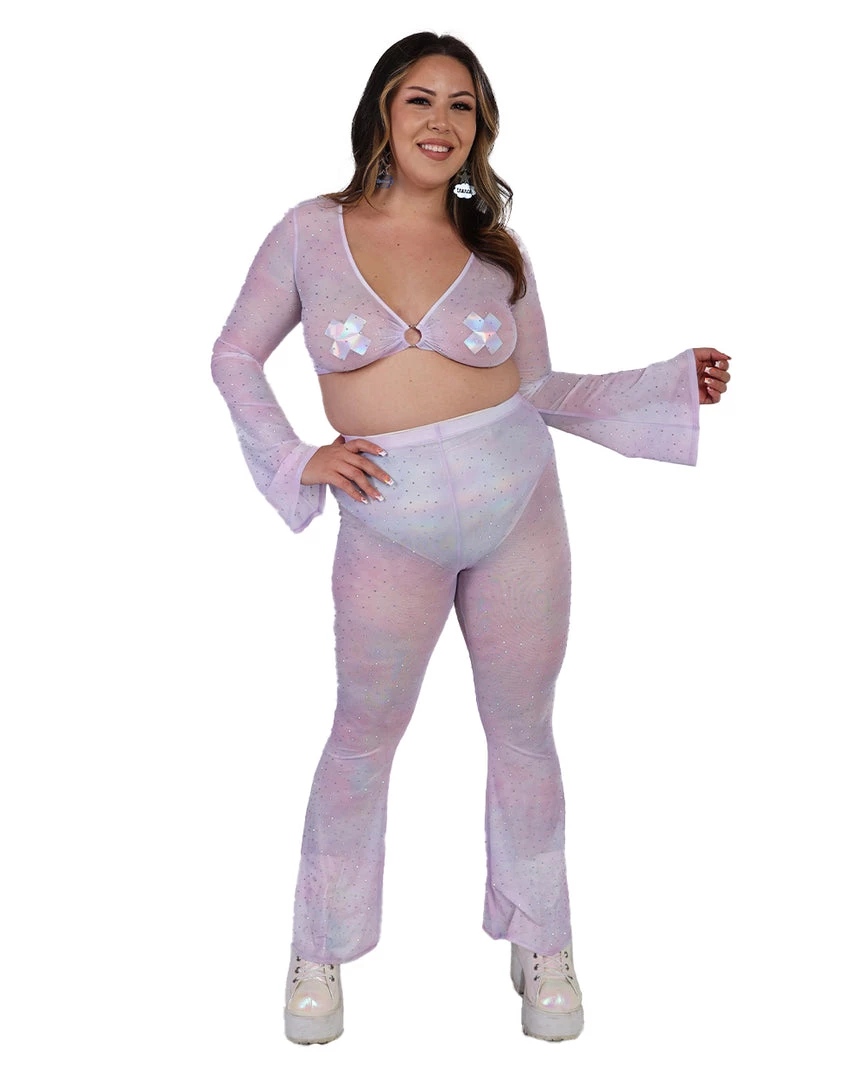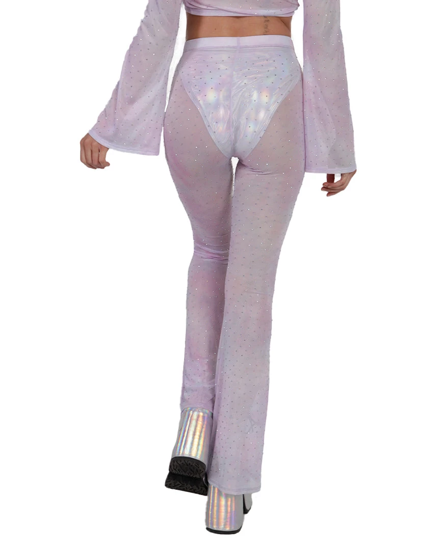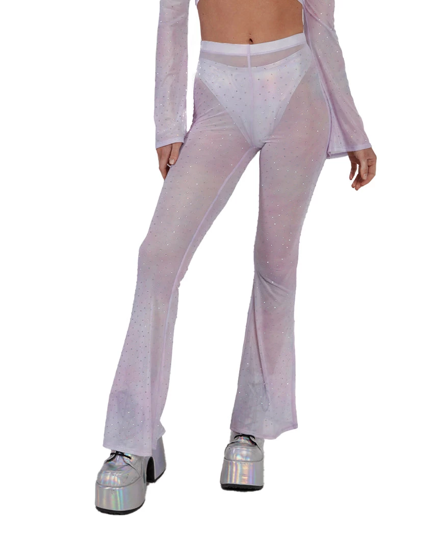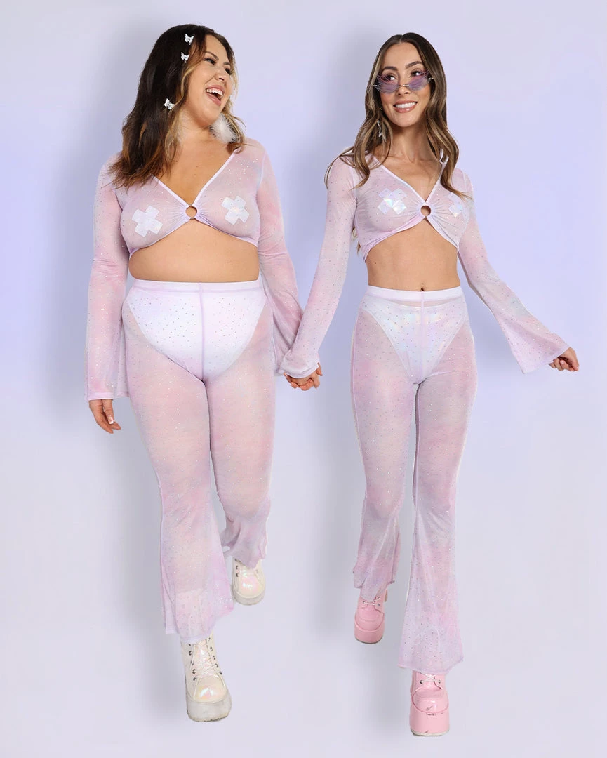 Our Daydreamin’ Mesh Bell Bottoms will have u feeling like you’re floating in the clouds, thanks to its flowy see-through material. These mesh pants feature a high-waist silhouette and flare design at the bottom.