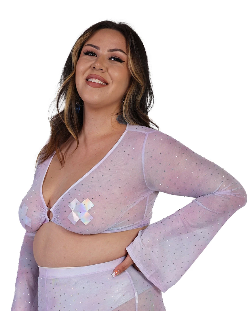 Our Daydreamin’ Ruched O-Ring Top will have u feeling like you’re floating in the clouds. This top is made from a soft see-through material and features an o-ring accent and bell sleeves.