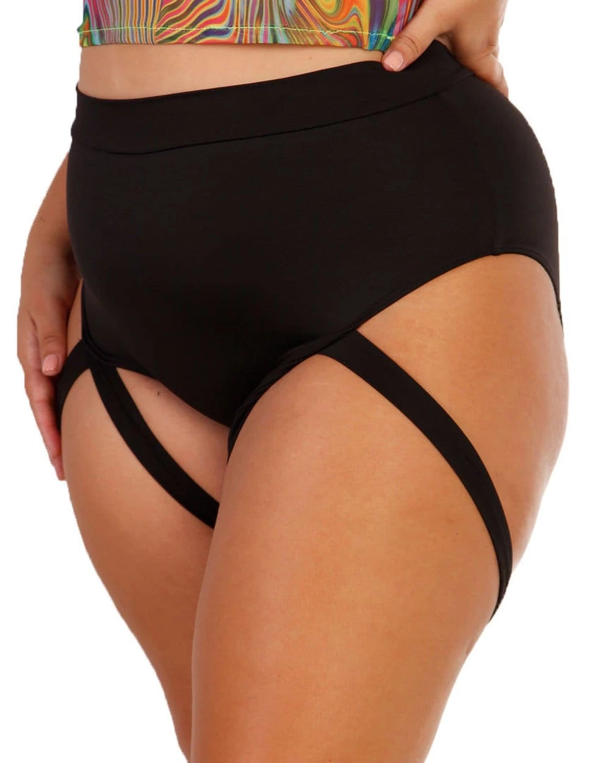 You only play by your own rules in our Badd Girl High Waisted Harness Booty Shorts. These black rave bottom are high waisted, with a moderately cheeky fit and thick harness strap around each leg. Trying to step outta your comfort zone & try something new? These rave bottoms perfect for you!
