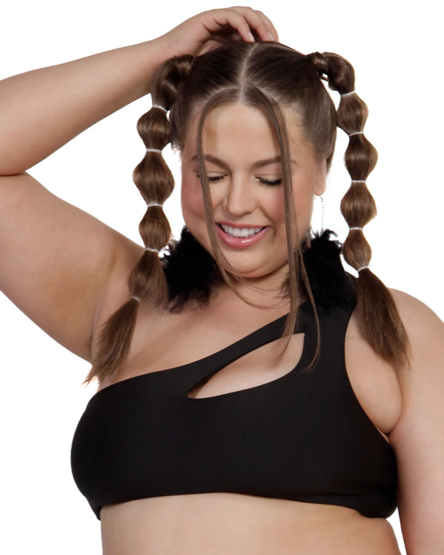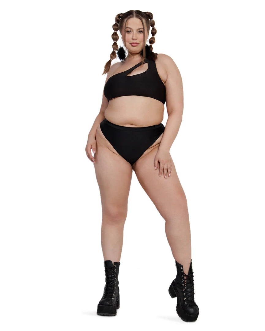 Everyone’s eyes will def be on u when u wear our Demand Attention Cut Out Crop Top. This black one-shoulder bikini top features an asymmetrical neckline that shows off some skin. It’s stretchy, soft, and comfortable for all-day wear.