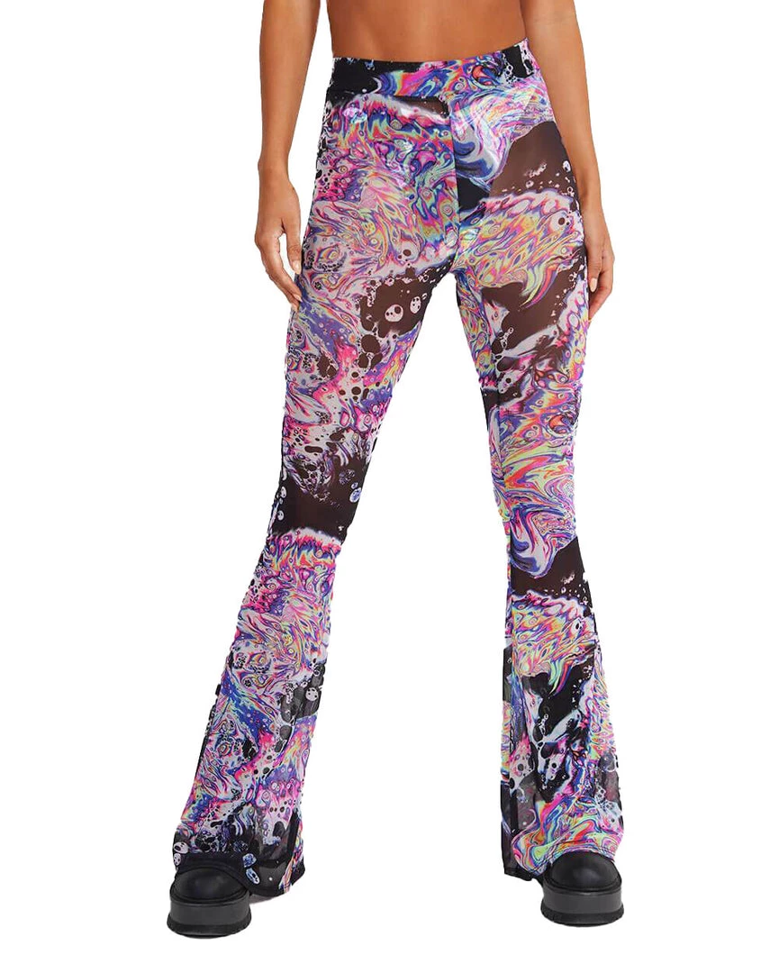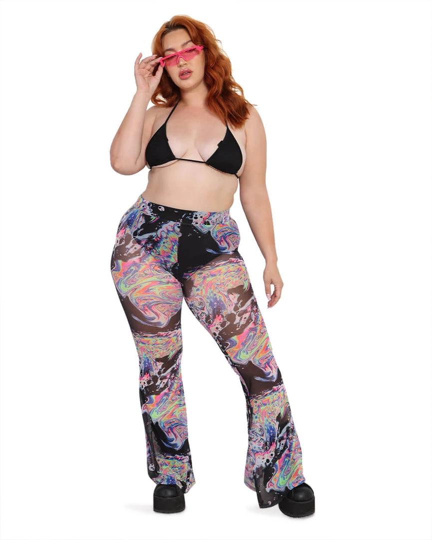 Ride the psychedelic waves of life with our Liquid Tripp Mesh Bell Bottoms. These stretchy and comfy pants flare out at the bottom, accentuating ur curves and making u stand apart from the crowd.