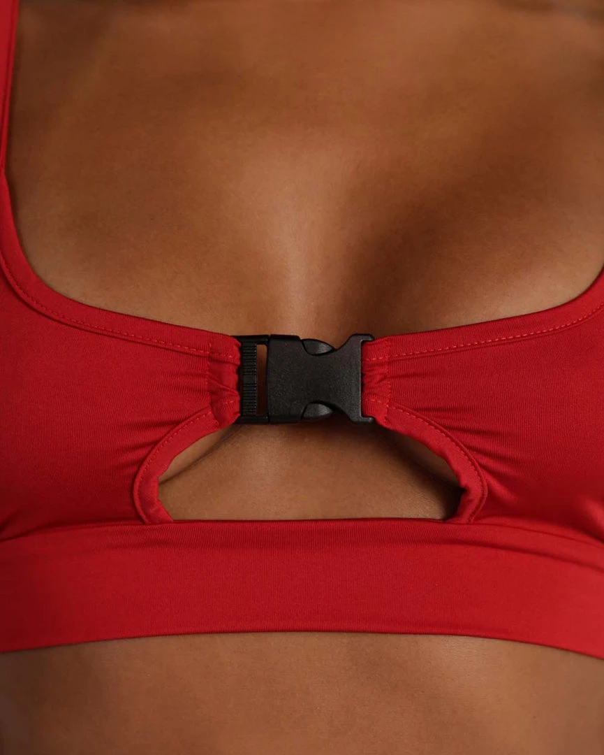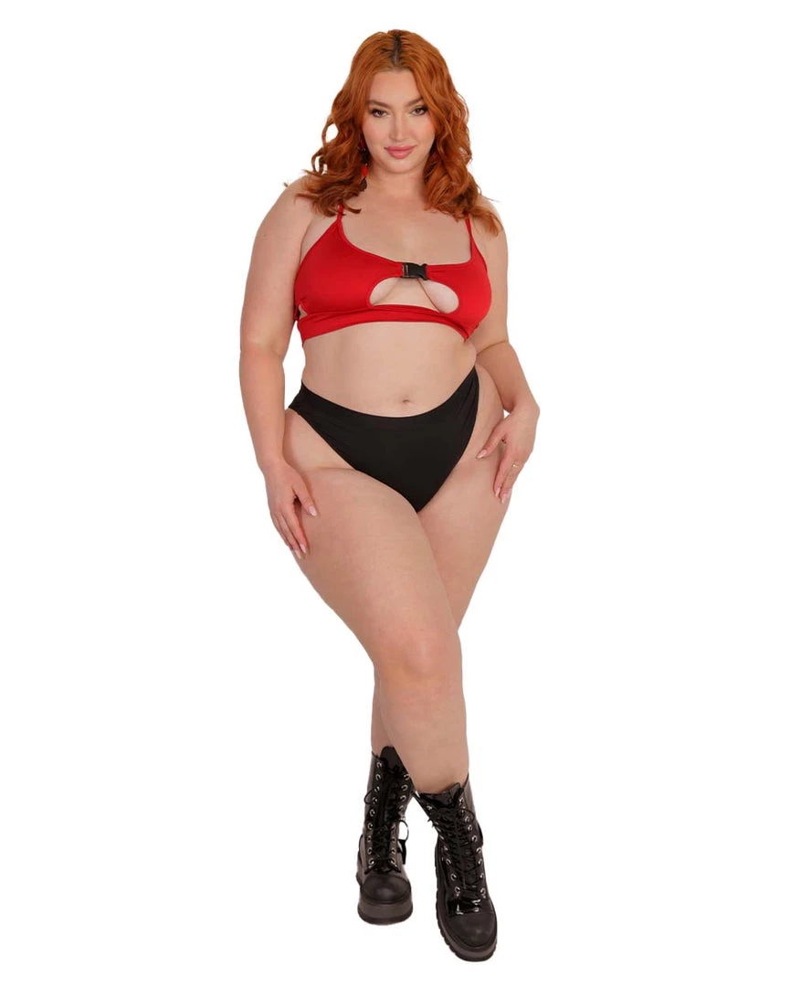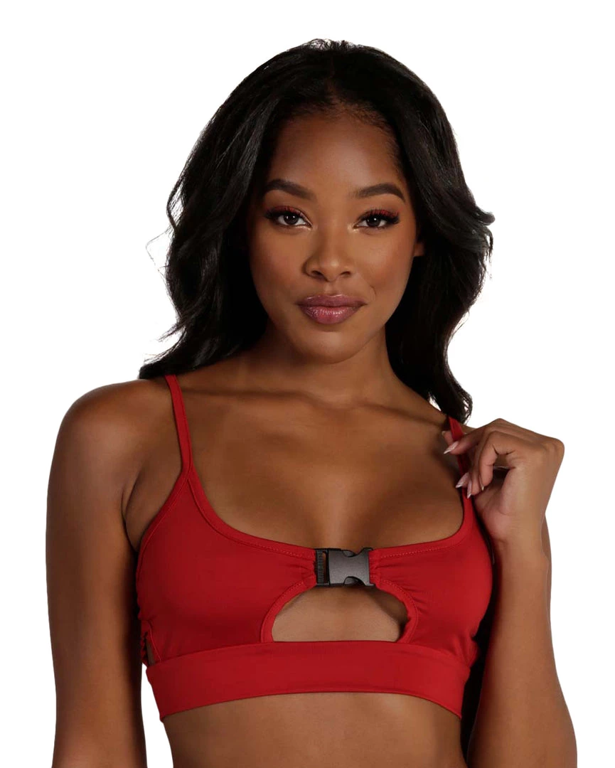 Show off some skin in all the right places with the Red as a Cherry Cut Out Speed Clasp Top. This crop top features skinny straps, a keyhole cutout, and a speed clasp closure for that edgy touch.