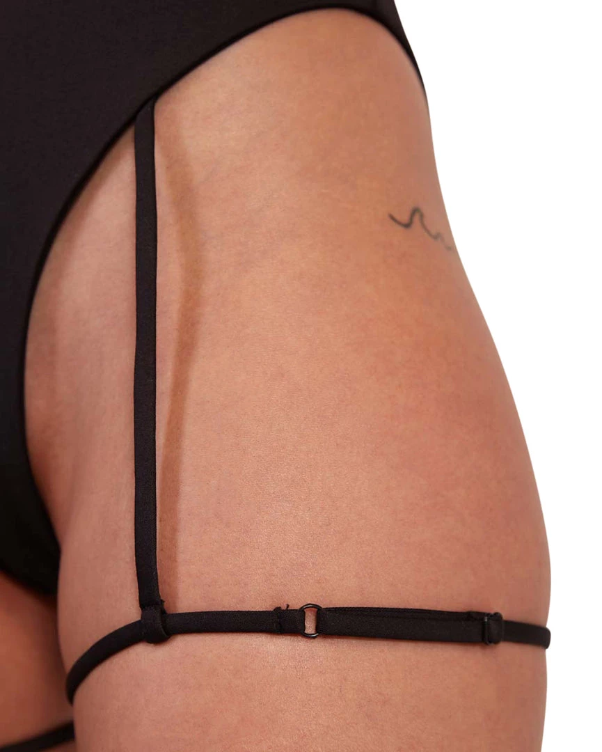 Turn heads in our Smokin’ Hot Deep V Harness Bodysuit. This one-piece has a figure-flattering fit, a deep plunging neckline, cheeky coverage, and a leg harness.Â