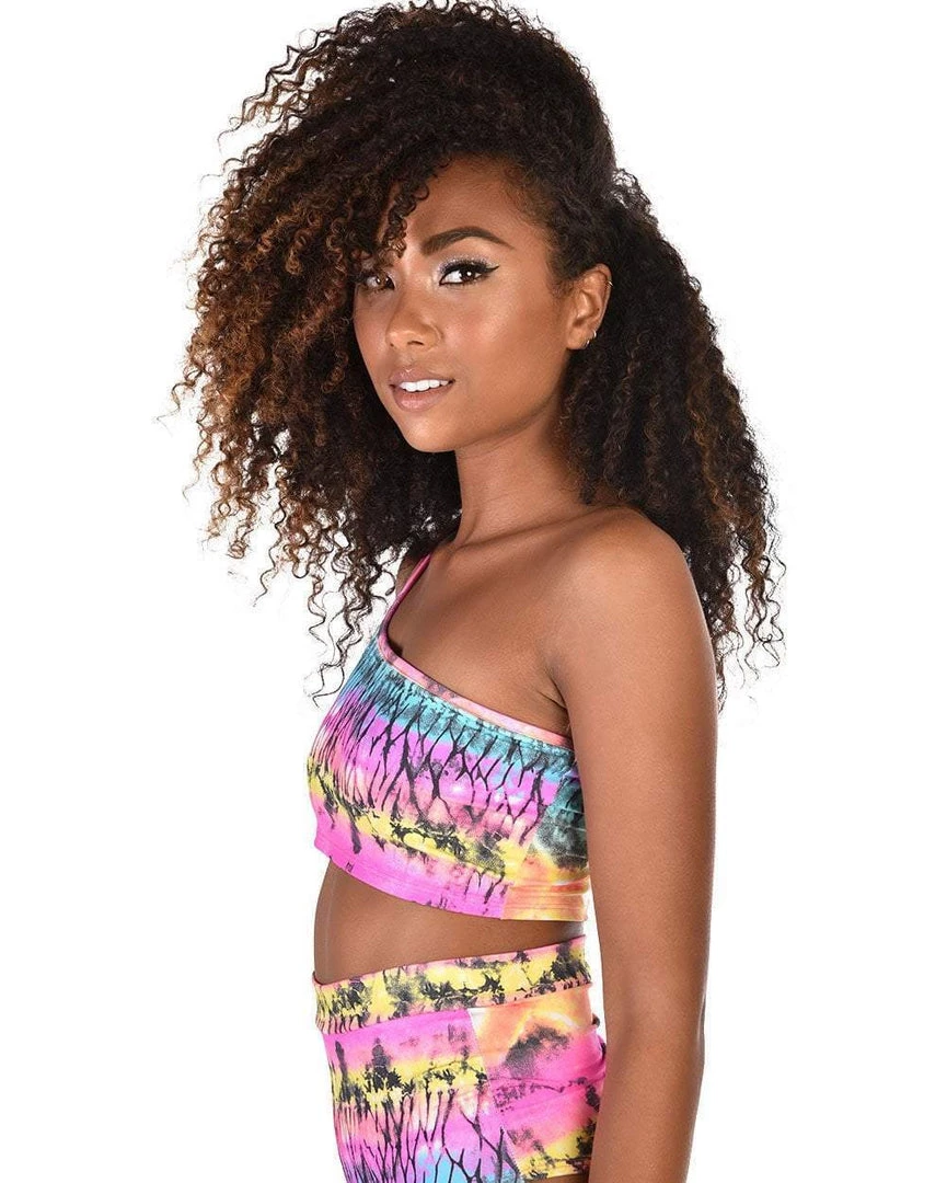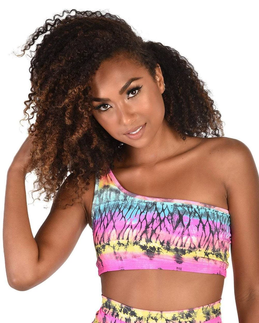 Feel all the tropical vibes in our Sunset Palms One Shoulder Crop Top. This colorful AF top has a one-shoulder style with an assortment of summer colors.