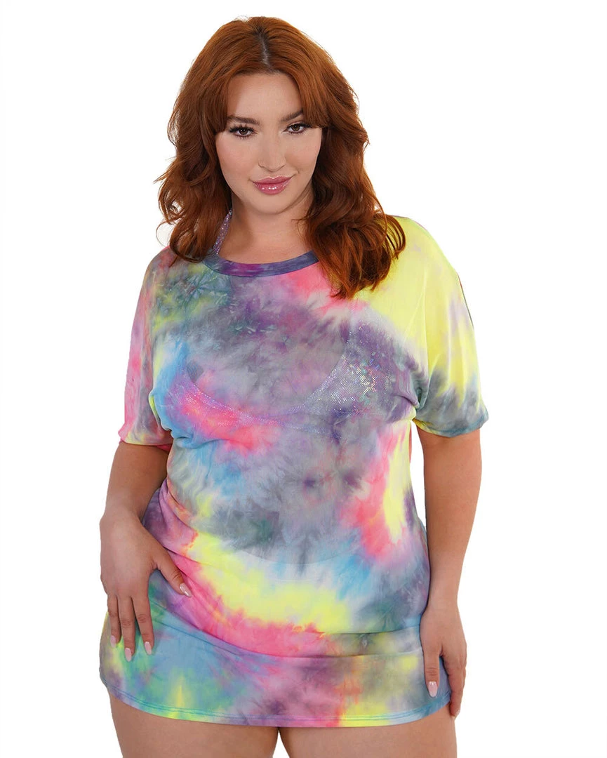 You’ll be ready to conquer the dance floor in our Tie-Dye Cutie Oversized Mesh Tee. This oversized see-through top has a cute AF tie-dye print so that you radiate good vibes all night.