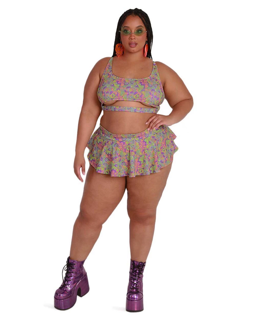 Give out bright colors and carefree vibes with the Recycled Fabric Magic Mushroom Mini Skirt. U can never go wrong with its flower print, high-waist silhouette, and flowy design. It’s also made from recycled fabric, making it completely sustainable so you’re feeling good and looking amazing.