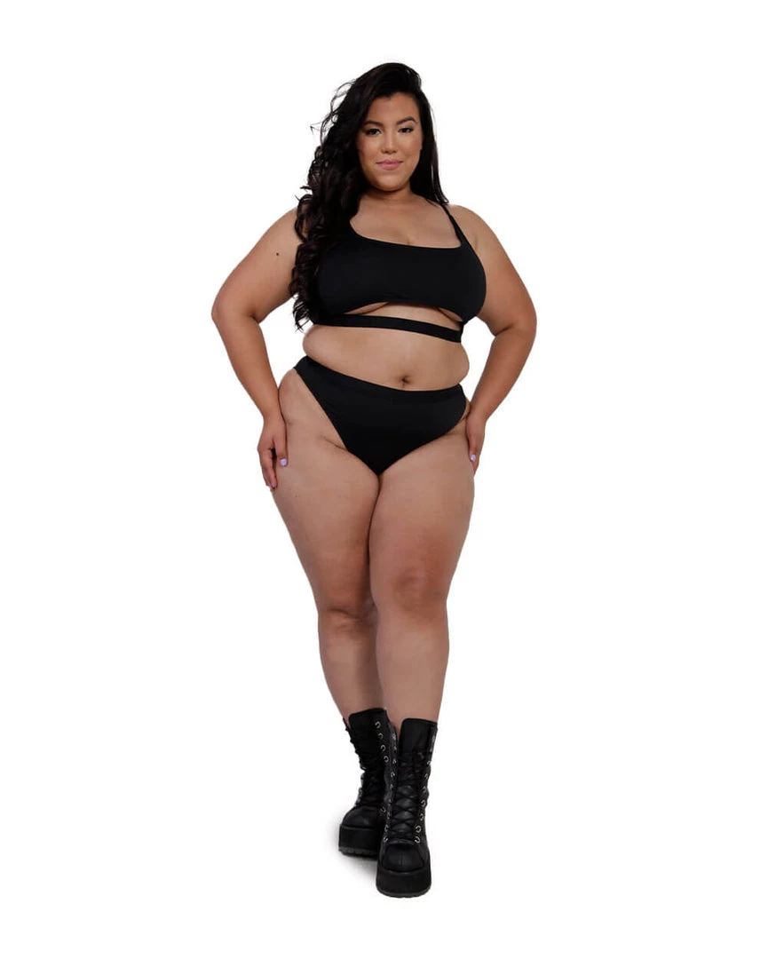 Be sexy and sustainable in our Recycled Fabric Malibu BB Cutout Crop Top. Ur fav basic top now comes in recycled fabric. Featuring a form-fitting shape and an underboob cutout, this black top goes well with any bottoms.