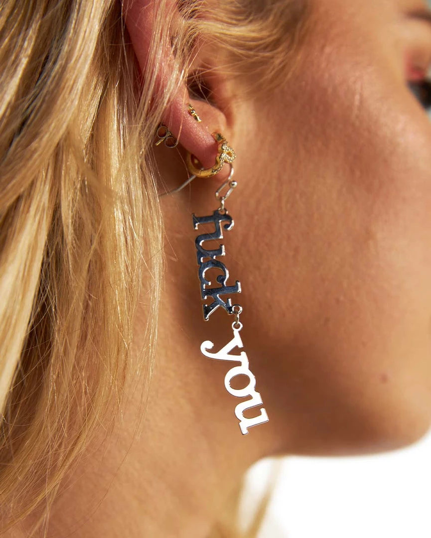 Tell them off with the F U Drop Earrings. Wear these gold-plated chain earrings with ur rave baddie outfit and complete the look with thigh-high platforms.