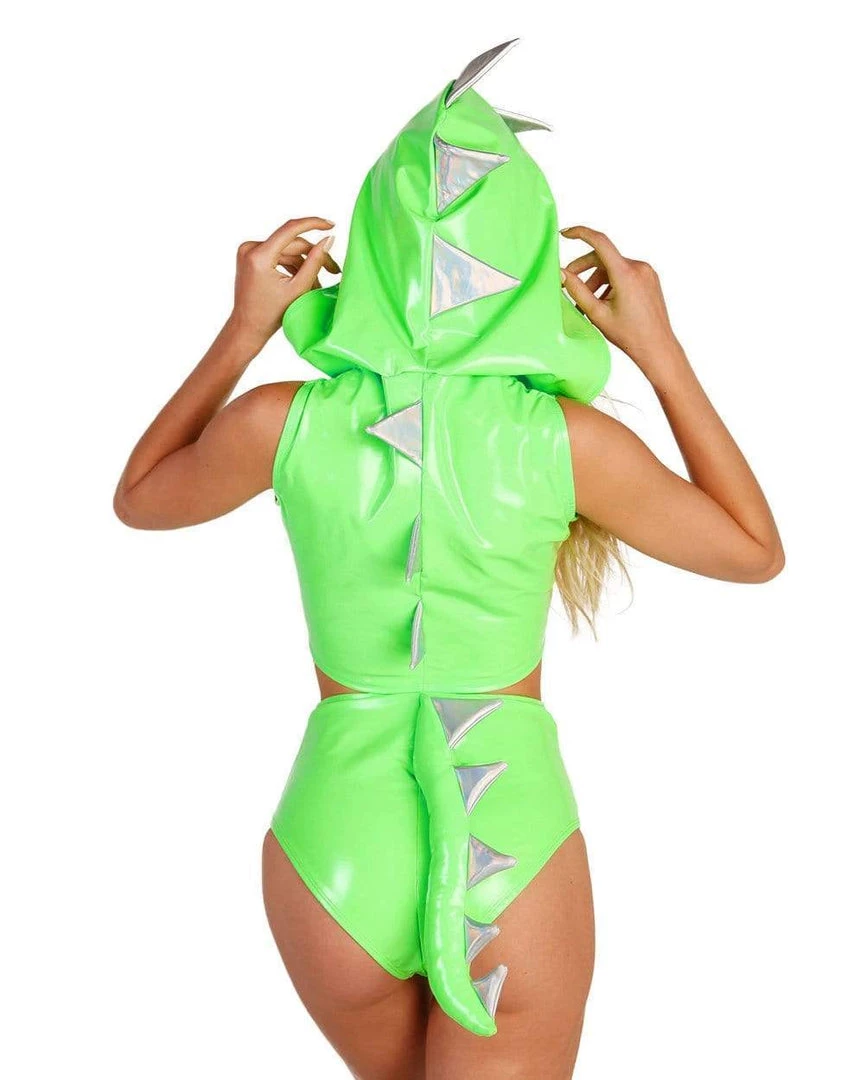 Say rawr in our iHeartRaves Exclusive Dino-mite Costume. This sexy prehistoric neon green look includes a v-neck crop top with matching high waisted bottoms with an attached tail to make your look realistic AF this spooky season.