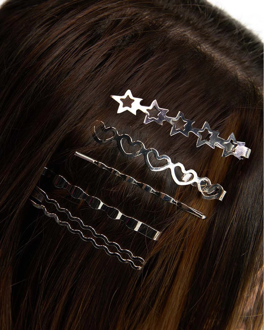 Add a touch of daintiness and grace to ur look with our All My Love Hair Clip. These metal hair clips are not only functional but also adorable as they’re decorated with hearts, spirals, stars, and other fun patterns.