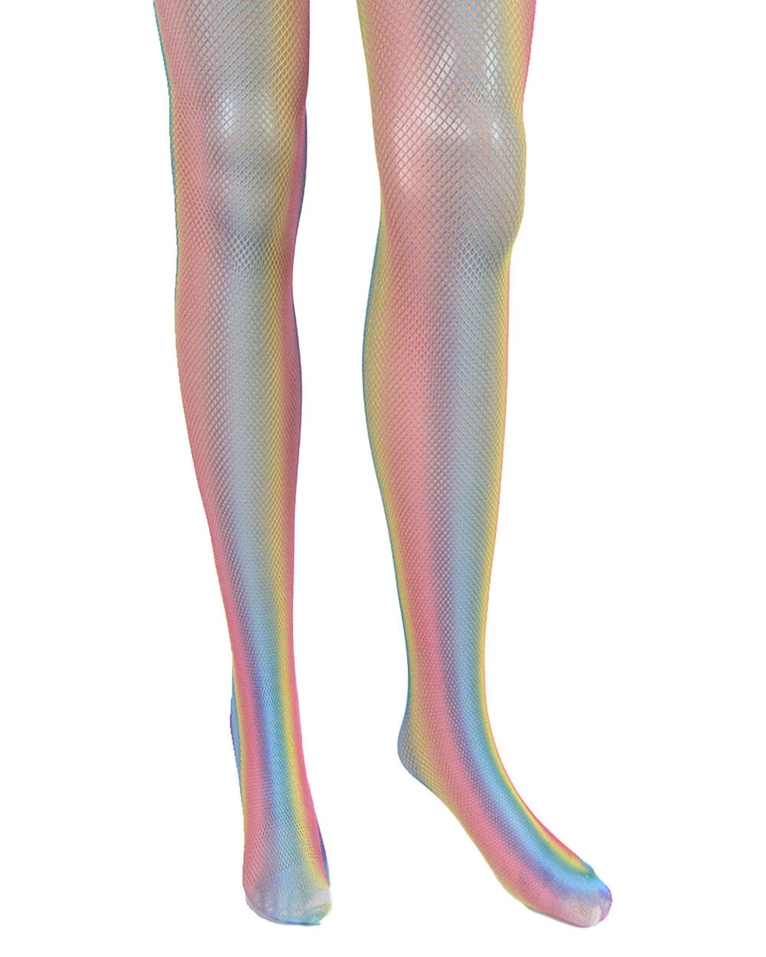 Fulfill all ur cyber rave girl dreams with the Cyber Sunset Rainbow Stockings. The rainbow sheen, the subtle blends of colors, and the delicate fishnet material will have u looking like a prismatic warrior.