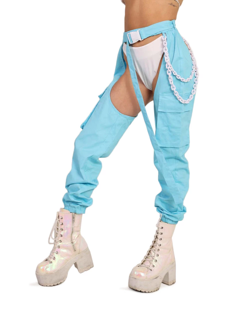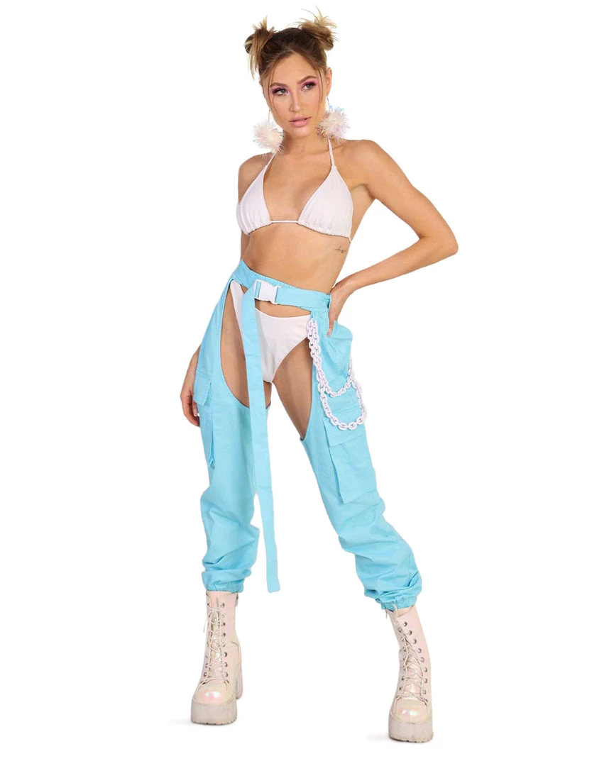 Step out with a dreamy fit with our Forecast is Cloudy Buckle Chain Chaps. These chain chaps are comfortable, airy, and have the perfect shade of blue.
