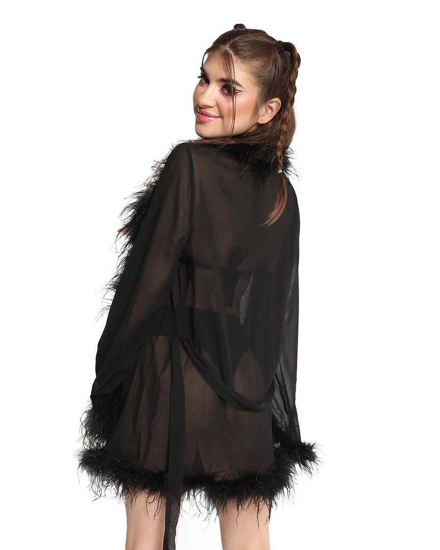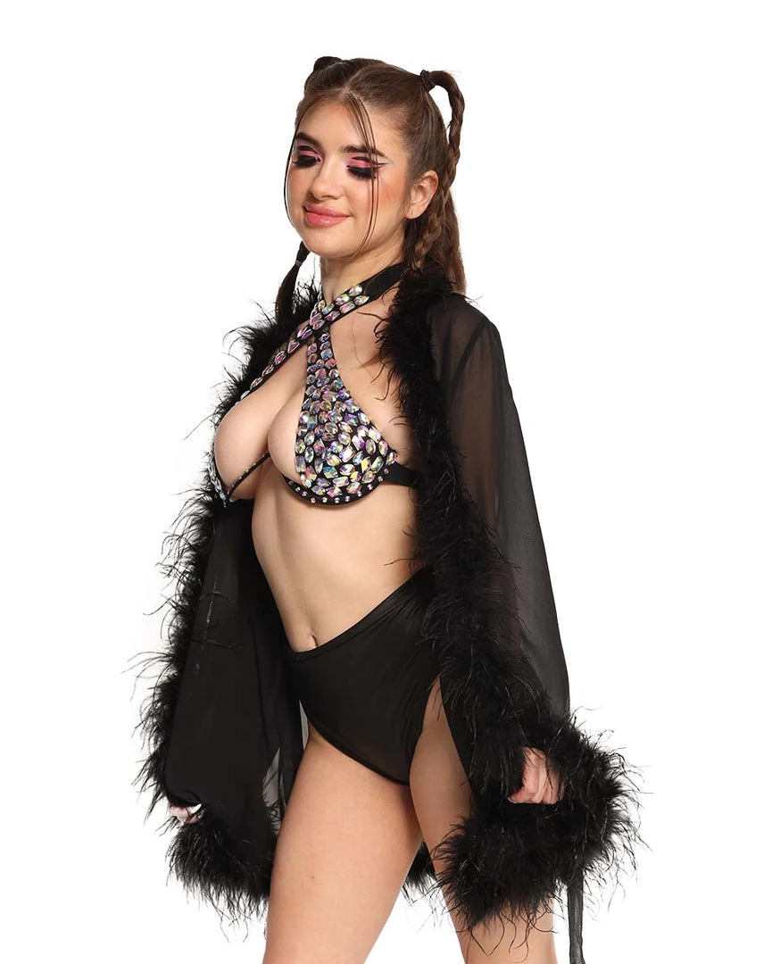 Our Heavenly Bliss Marabou Mesh Cover Up will bring ur inner angel baby forth. This all-white robe is made from a mesh material that sways gracefully to ur every movement. It’s decorated with fluffy marabou all over for that boujee but baddie effect.Â