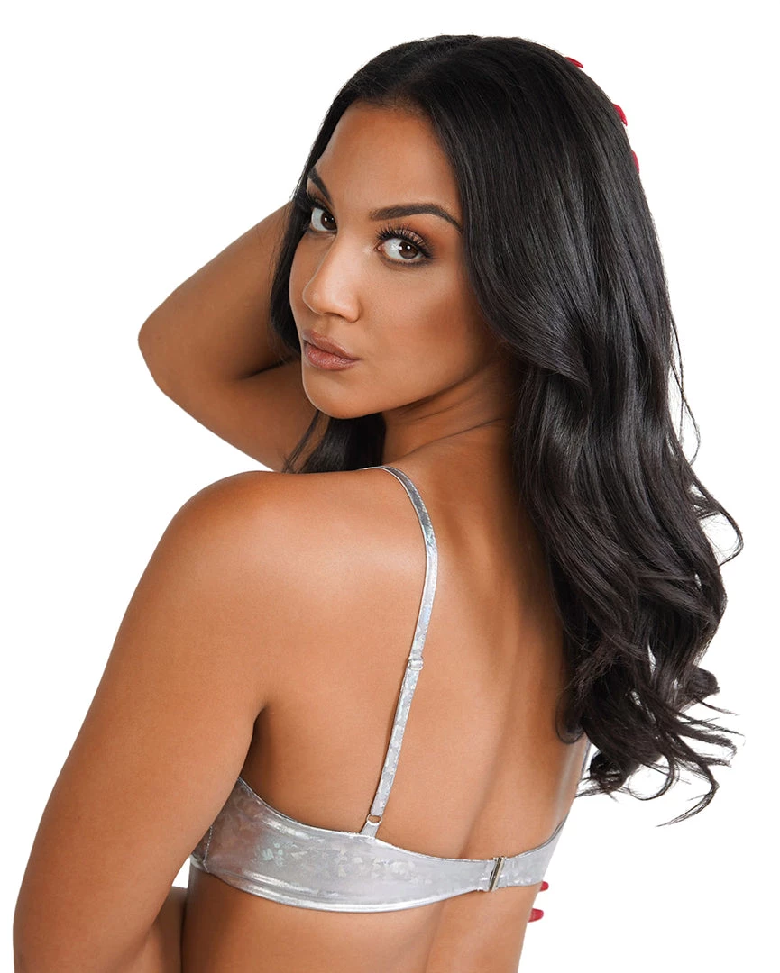 Sparkle the night away with our Nova Babe Two Piece Holo Set. This shimmery rave set features a silver mini skirt and crop top. Make this your next festival fit ASAP!