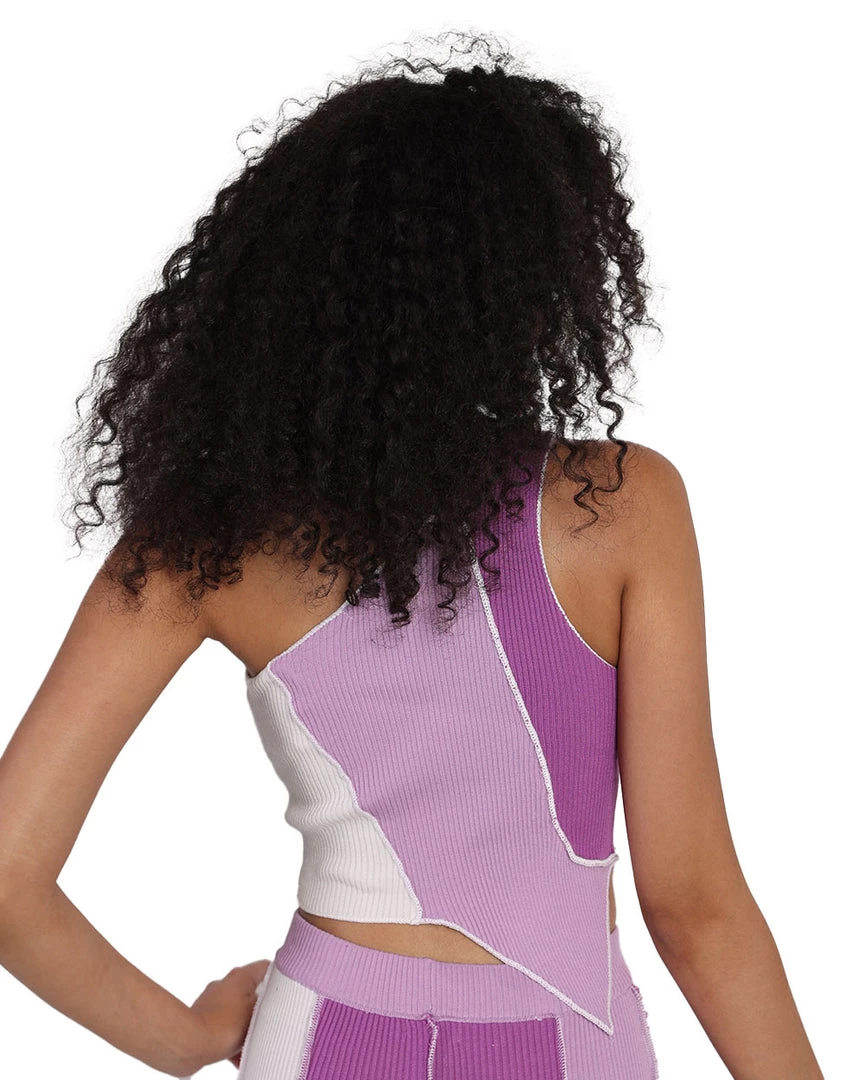 Feel cute and quirky with our Stay Fab Cropped Tank Top. This one-shoulder top features an asymmetrical hem, classic ribbed texture, and ultra-soft feel. Its tri-color hues: white, lavender, and purple, are perfect for chill days.