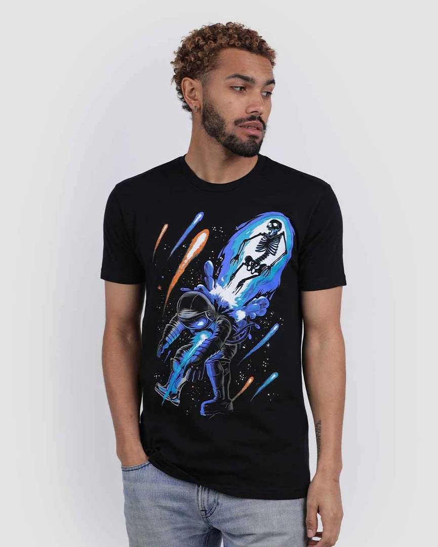 Space is a treacherous place where even the most knowledgeable and experienced explorer is subject to peril. On this ominous night, the Astronaut travels the Galaxy, not knowing his impending fatality. From the darkness emerges a shower of comets that surges through the sky at light speed, destroying all matter that intersects his path. A comet plummets through the Astronaut and with it snatches his soul, the fatal Comet Collision.