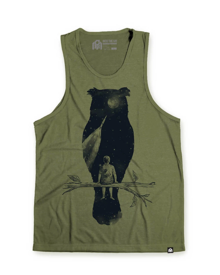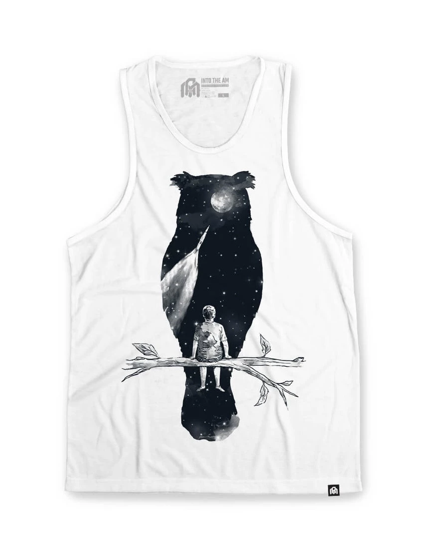 Our original design Dreamer Tank is a surreal escape to a wistful place of child-like wonder. A place where dreams begin among the stars and anything is possible!