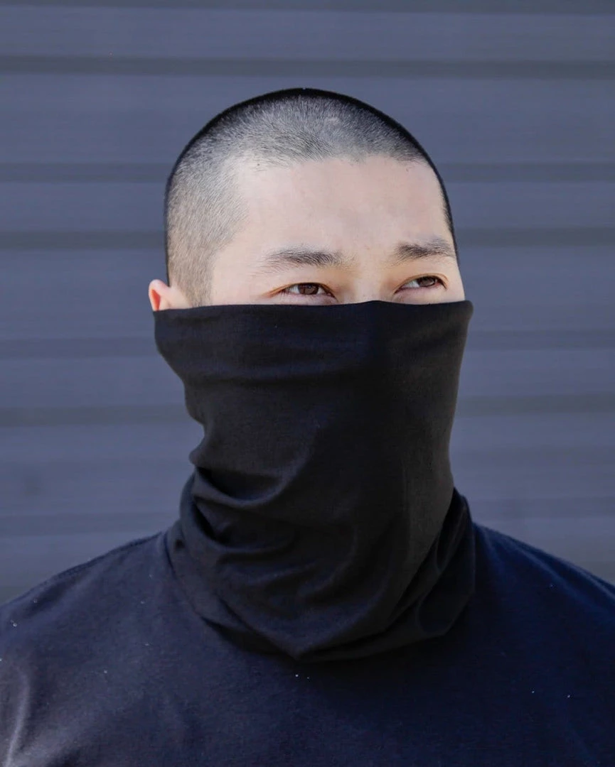 The Black Seamless Mask Bandana is a multi-functional face-covering that slides easily over your head to cover your neck, mouth, and nose. It can also be worn as a headband, wristband, hair tie, and more!