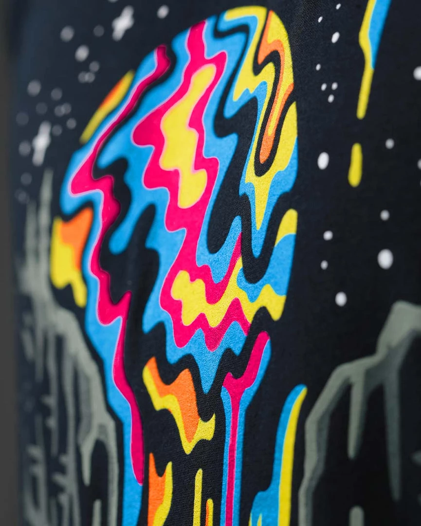 Far away in the depths of the Universe, a group of rare Technicolored planets adorn the sky. It’s a place where matter, time, and space defy understanding, these planets unleash innumerable hues that melt and slather the cosmic landscape, birthing new worlds with each drip of color. The Galaxy is a great big canvas, overflowing with creativity and life. May this remind us, to douse our own little worlds in the colors of our love and self through uninhibited expression—because life Is too short to be dull.