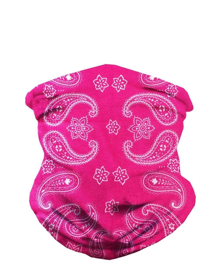 The Paisley Seamless Mask Bandana – Pink is a multi-functional face-covering that slides easily over your head to cover your neck, mouth, and nose. It can also be worn as a headband, wristband, hair tie, and more!