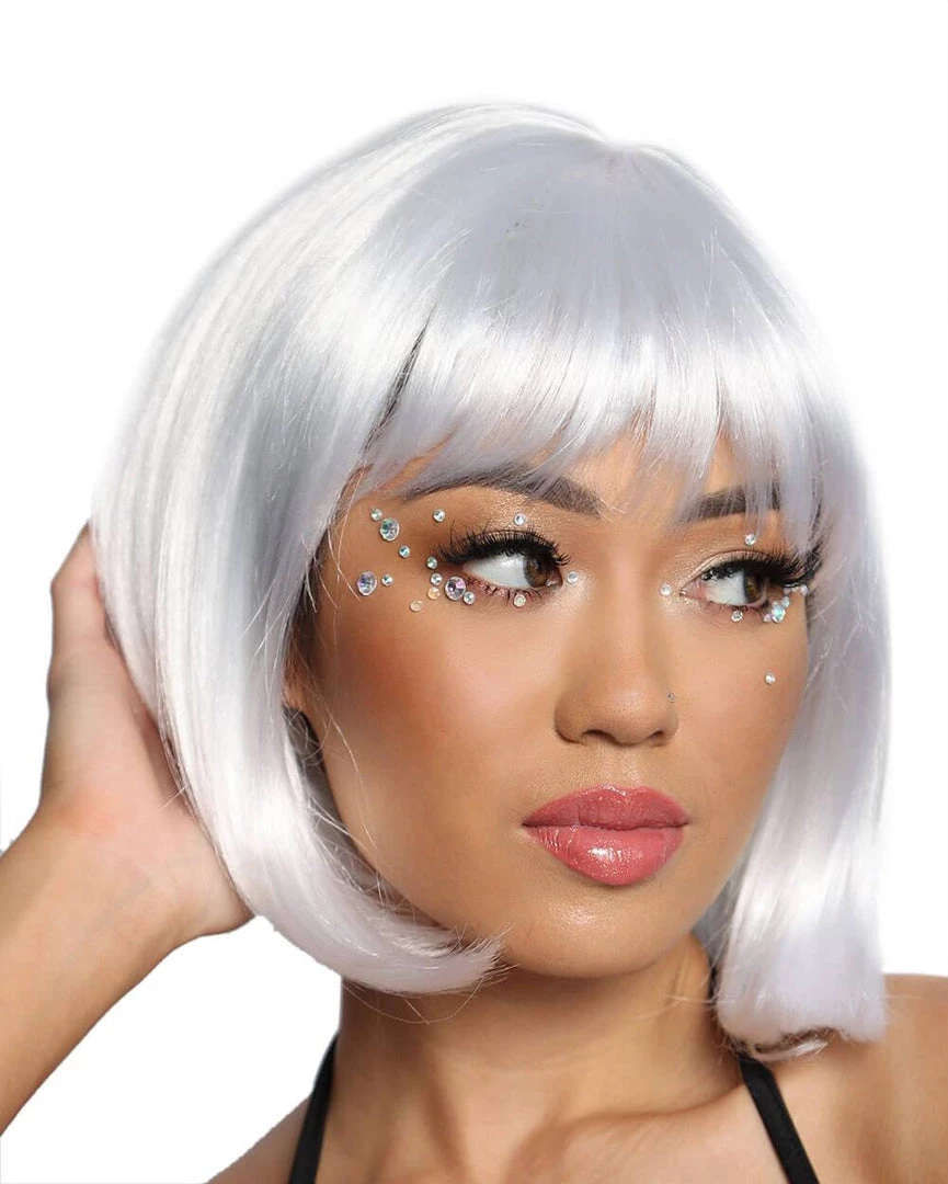 Our Go Go Girl Bob Wig is the way to go if u want to express urself boldly. This platinum blonde wig has a soft and silky texture, it bounces whenever u move. Just imagine wearing this with a holographic bodysuit!