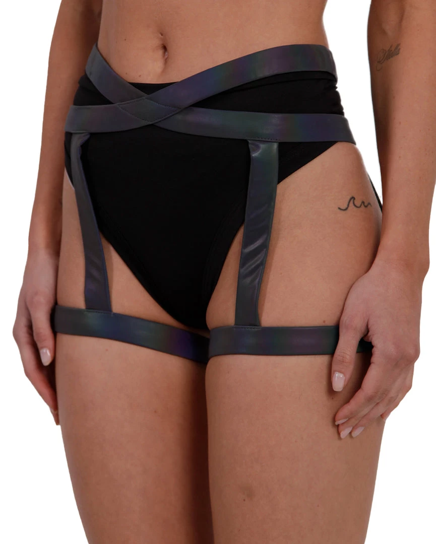 You’ll be feeling urself at every moment with our Bish, I’m Winning Reflective Harness Bottoms. This leg harness has stretchy straps and is made of breathable material, making it ideal for all-day wear.