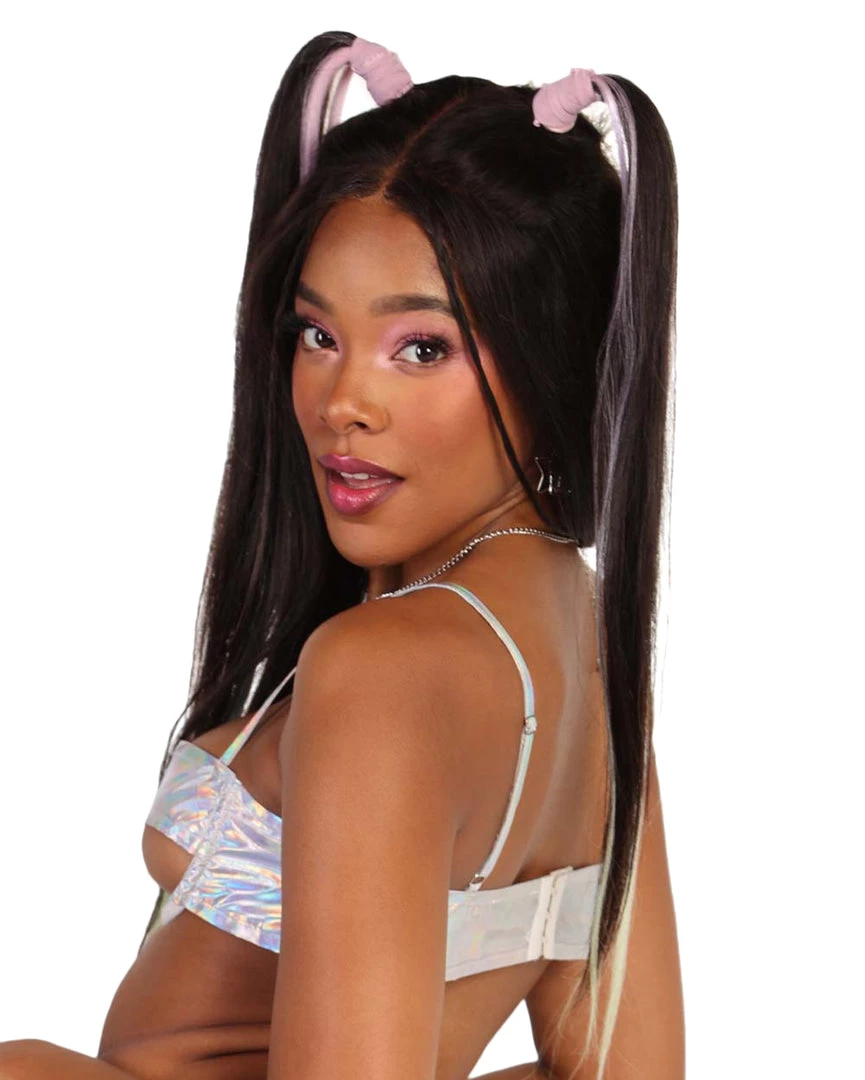Trigger a nostalgic feeling with the Stargirl Holo Underboob Top. It has skinny straps, underwires that accentuate the underboob, and a holographic finish that draws the rainbow spectrum with the changing of the lights.