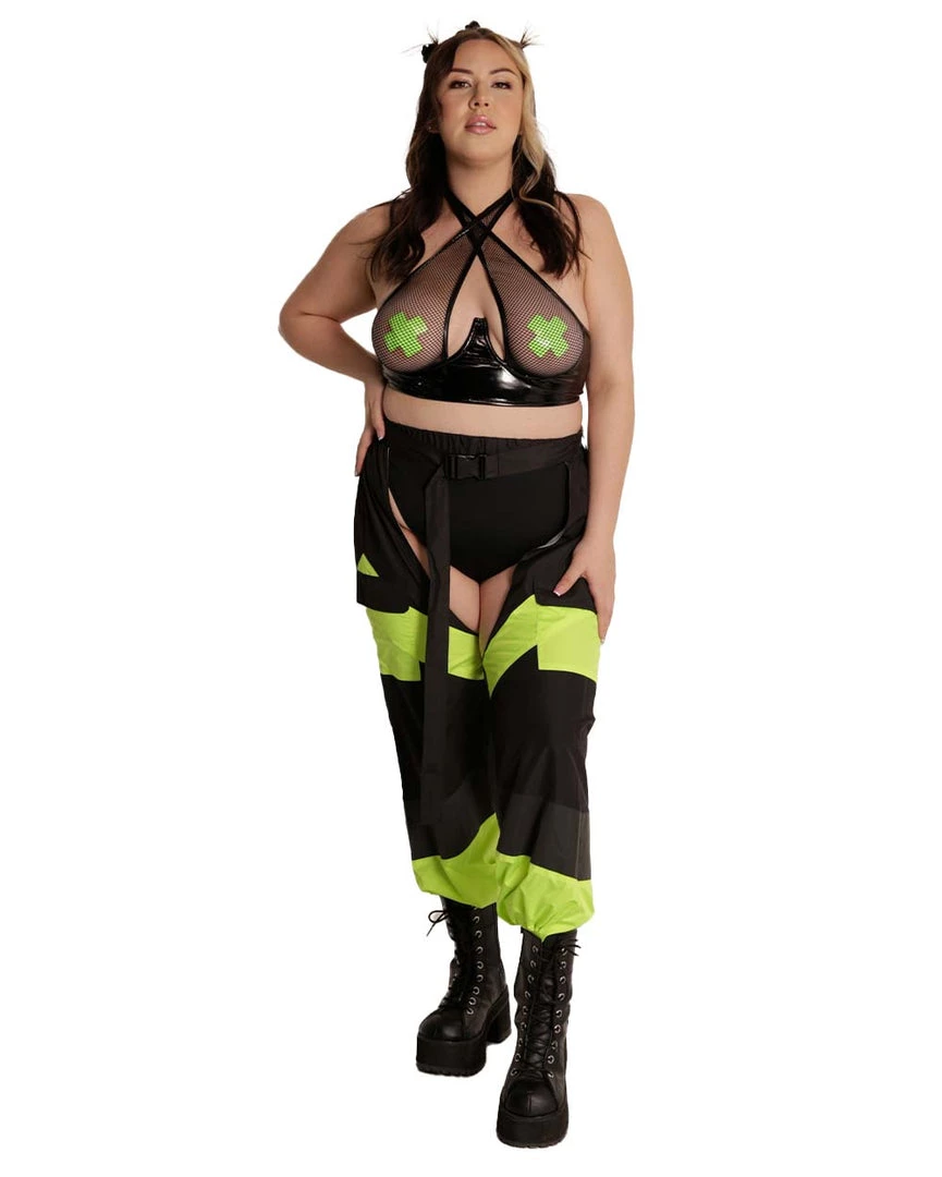 Strike the perfect balance between sultry and edgy with our Nighttime Escapades Fishnet Top. This corset top combines latex and fishnet for that drop-dead sexy look.