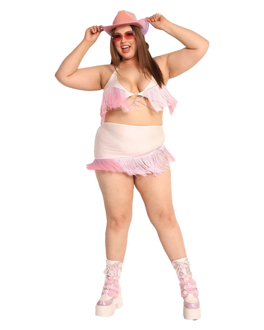 Captivate everyone’s attention with our Wildest Dreams Fringe Halter Top. This top combines the dreamy hues of lavender and light pink and finishes it off with fringe and chain accents on the cups. Â