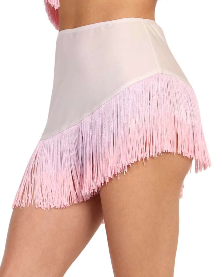 Captivate everyone’s attention with our Wildest Dreams Fringe Skirt. This mini skirt has a high-waist cut and an asymmetrical hem with fringe all over them that looks stunning when worn with its matching top.
