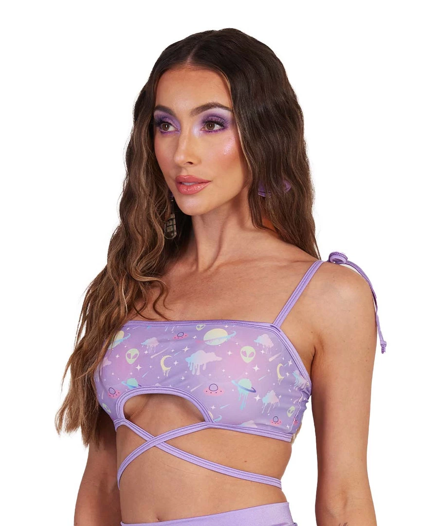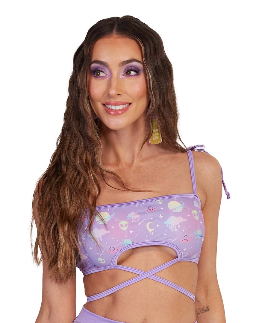 Wear the Lunita x iHR Ultra Violet Euphoric Wrap Top coz you’re irresistible. This crop top has a square neckline, an underboob cutout, and cross-over straps.