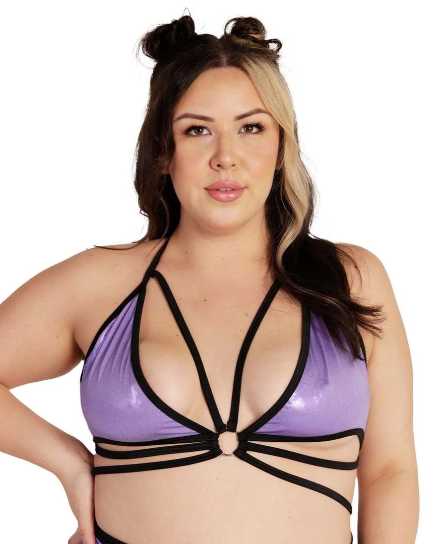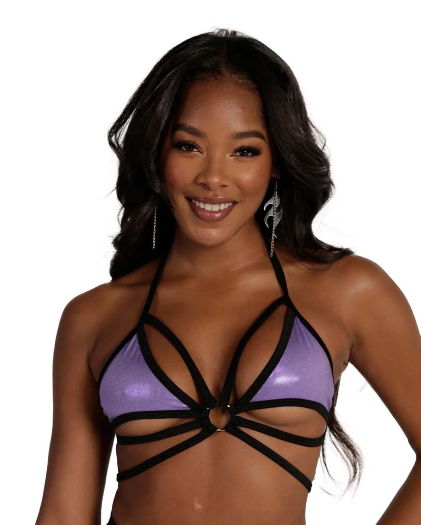 Serve some looks on the dancefloor with our Rolita x iHR Butterfly Kisses Strappy Top. This top features a triangle cut and strappy detailing all over.