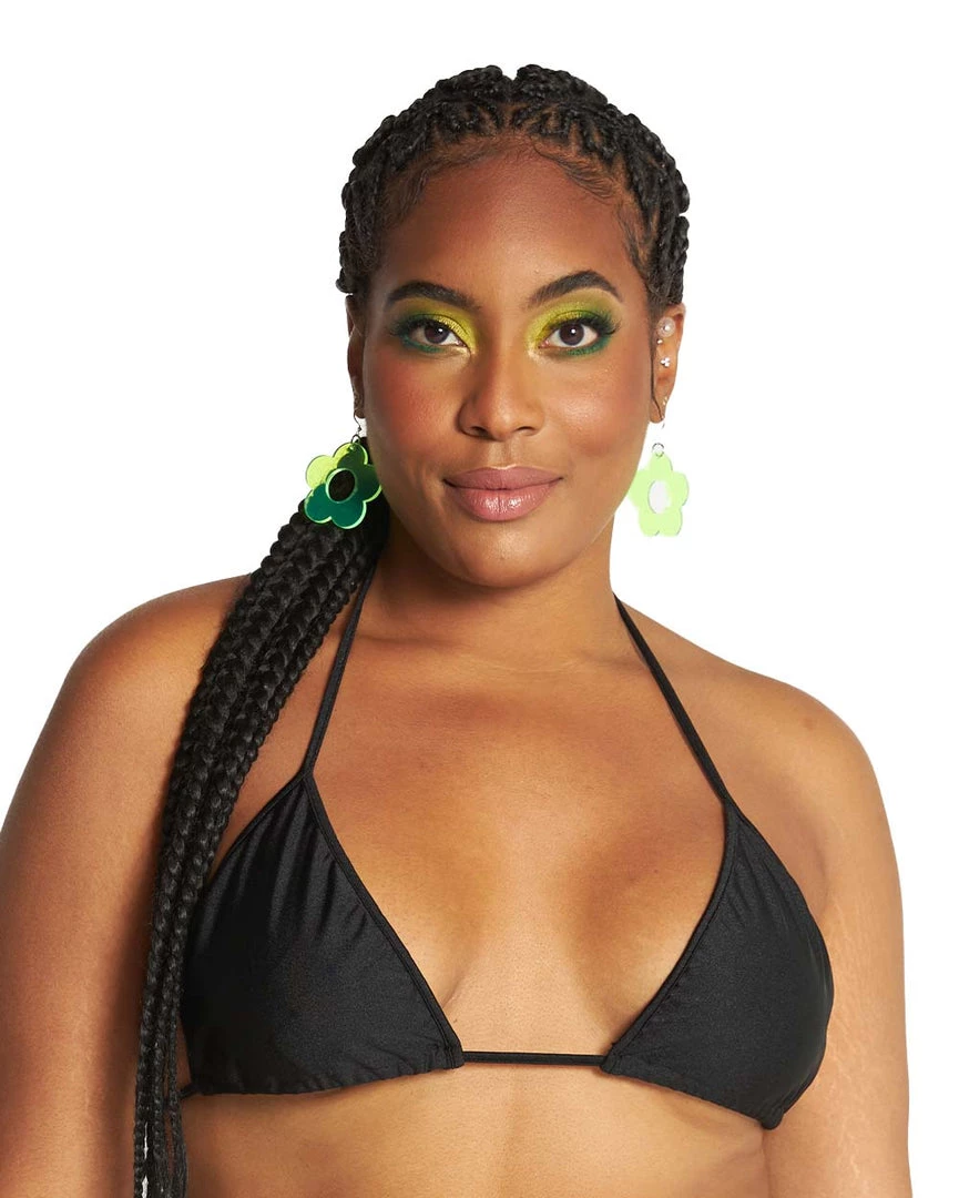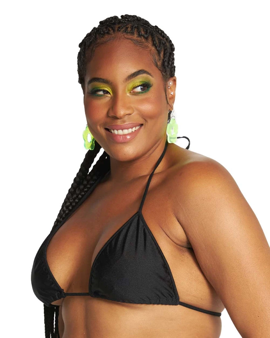Give them something to talk about with our Must Be Dreaming Triangle Top. This top has spaghetti straps and a plunging neckline. And, it comes in baby blue, black, lavender, neon green, neon pink, red, and white.